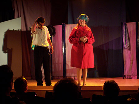 En este montaje Menecmos hace una adaptación del texto y la pareja original se transforma en cuatro parejas, de modo que se puede generalizar el discurso ampliándolo a toda la sociedad española del momento.
