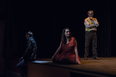 El texto explora el proceso de la creación teatral. Investiga sobre la delgada línea que separa la realidad de la ficción. Navega en ese pequeño espacio entre la ficción y la realidad.